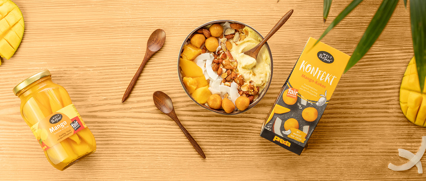 Das Besondere daran? Die feinen Mangos in den Produkten stammen von der Organisation PREDA von den Philippinen. Mit deinem Einkauf unterstützt du Kinder in Not auf dem Weg in ein würdevolles Leben.