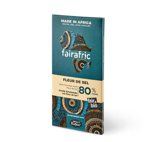 pâte de cacao*, sucre de canne brut*, beurre de cacao*, fleur de sel, cacao : 80% minimum. *De culture biologique contrôlée. Conserver au frais et au sec. Peut contenir des traces de lait, d'arachides et de fruits à coque.