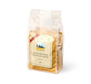 Lentilles jaunes décortiquées issues de l'agriculture biologique.