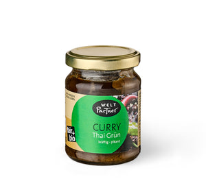 La pâte de curry vert thaïlandaise piquante et puissante est un ingrédient indissociable de la cuisine asiatique. Des coopératives de petits cultivateurs des pays du Sud fournissent les épices de qualité supérieure, l'huile de tournesol biologique à la base de la pâte provient d'Allemagne.