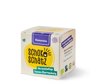 Le plus fin des chocolats au lait bio du commerce équitable rencontre un cadeau de qualité : le "SchokoSchatz Kids" équitable surprend les enfants après avoir dégusté la délicieuse boule de chocolat avec une véritable pierre précieuse. Il existe en tout 10 pierres précieuses différentes qui peuvent être collectionnées et échangées. Avec une brochure d'information adaptée aux enfants sur les effets des pierres, cela devient la surprise (pour enfants) la plus durable pour petits et grands ! Sans plastique, bio et équitable ! Découvrir - savourer - se réjouir ! Attention : ne convient pas aux enfants de moins de 3 ans en raison de petites pièces pouvant être avalées.Mehr lesen...