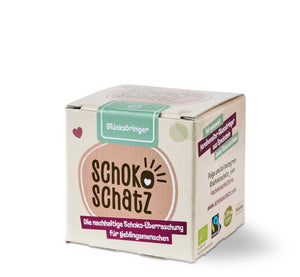 Le chocolat noir bio commerce équitable le plus fin rencontre des petits porte-bonheur : une fois la délicieuse boule de chocolat avalée, le "porte-bonheur" SchokoSchatz surprend avec un éléphant porte-bonheur fabriqué à la main en stéatite du Kenya issue du commerce équitable. Chaque éléphant est unique - sculpté à la main, poncé et peint avec amour. Les peintures proviennent d'Allemagne, sont sans solvants, à base d'eau et 100 % résistantes à la lumière. Pour finir, chaque petite œuvre d'art est polie avec de la cire et obtient ainsi son doux éclat. Sans plastique, bio et équitable ! Découvrir - savourer - se réjouir ! Attention : ne convient pas aux enfants de moins de 3 ans en raison des petites pièces qui peuvent être avalées.