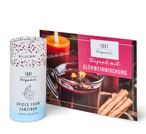 Glühweingewürz "1001 Nacht": Verleihe deinem Glühwein eine orientalische Note: Zimt, Sternanis und weitere edle Gewürze sorgen für einen warmen, würzigen Geschmack – perfekt für gemütliche Winterabende. Passt zu: Wein (1 Dose für 1,5l), Most, Sirup etc. Inkl. hübscher Rezeptkarte auf Deutsch.