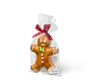 Feiner Fair Trade und Bio Lebkuchen Mann gefüllt mit einer köstlichen Biberli Füllung. Sorgfältig in der Confiserie Emmentaler hergestellt und gekonnt von Hand bemalt.