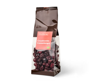 Cranberries gehören zur Familie der Preiselbeeren und haben einen fruchtig-herben Geschmack. Sie enthalten viel Vitamin C. Die Pflanzen wachsen relativ niedrig und entwickeln 90 Zentimeter lange Triebe. Eine ausgewachsene Pflanze kann bis zu hundert leuchtend rote, kirschgrosse Früchte hervorbringen.