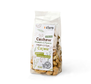 Cashewkerne geröstet 97% (BF), Meersalz 1,5%, Rosmarin 0,6%, Thymian 0,4%, Gummi arabicum