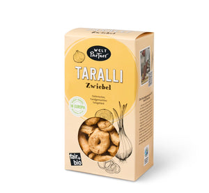 Fairer Genuss aus Apulien mit den Taralli mit Zwiebeln – Italienisches, handgemachtes Salzgebäck. Unsere Taralli, Grissini und Trecce stehen für authentischen Geschmack und verantwortungsvollen Genuss. In Zusammenarbeit mit Isola Sociale, einer Sozialgenossenschaft aus Süditalien, bringen wir hochwertige, faire Bio-Produkte nach traditionellen apulischen Rezepten auf den Tisch. Hergestellt ohne Hefe und aus biologischen Zutaten, verfeinert mit bestem Olivenöl von Canaan aus Palästina, entsteht ein unverwechselbares Aroma, das die handwerkliche Tradition Apuliens in jedem Bissen spürbar macht.Mehr lesen...