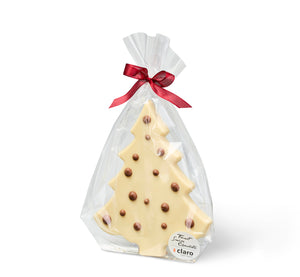 Die Fair Trade Weihnachtstanne wird sorgfältig aus feinster weisser Bio Schokolade gegossen, von Hand bemalt und mit Mandeln bestreut. Ein perfektes Geschenk für deine Liebsten!
